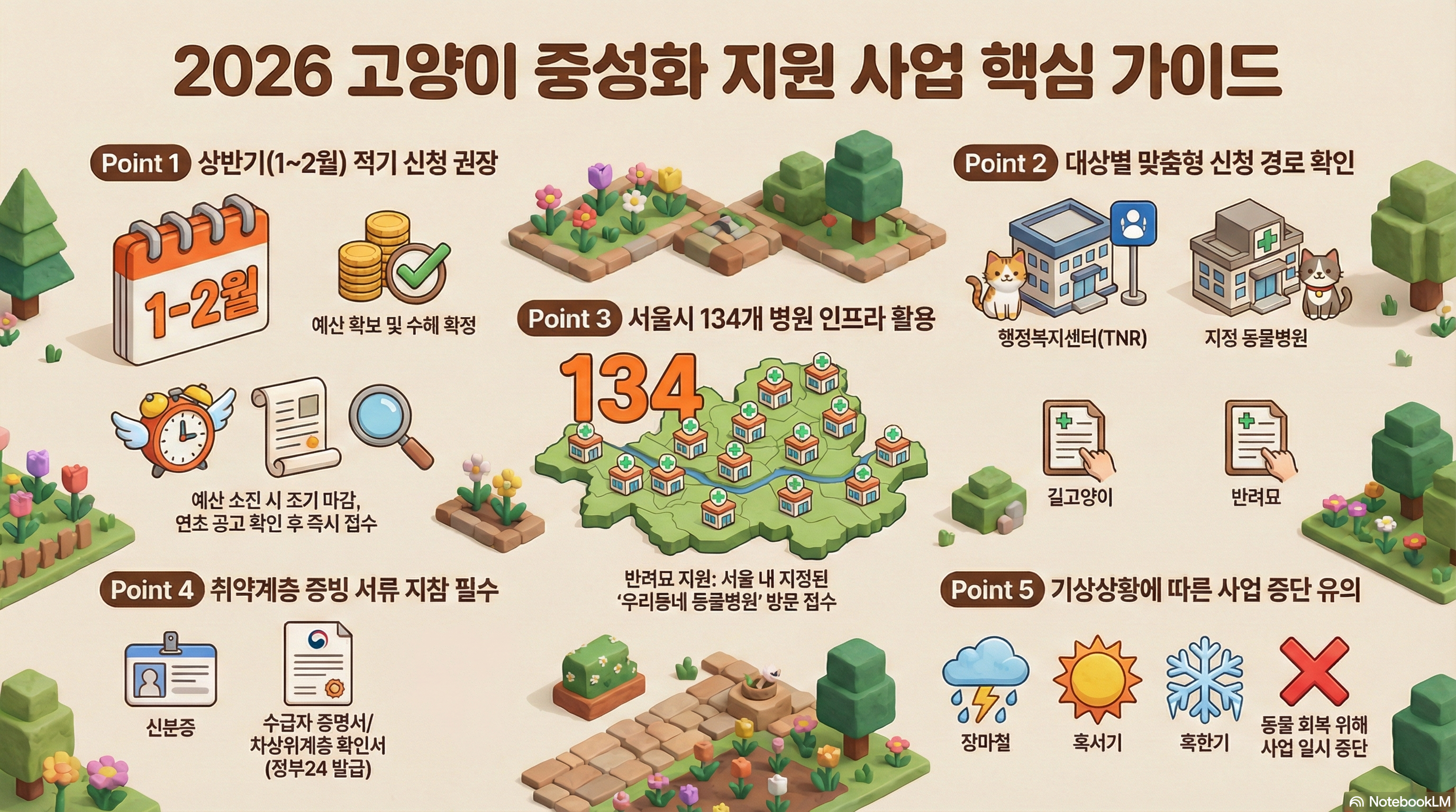 상반기에 신청하는 게 유리해요. 장마철이나 혹서기, 혹한기에는 수술 후 회복 문제로 사업이 일시 중단될 수 있습니다.